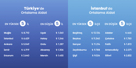 Türkiyenin önde gelen site ve apartman yönetimi platformu, 22 bini aşkın bina ve 1,5 milyondan fazla konutu kapsayan raporunu yayımladı. Türkiyede son 3 yılda aidatlar ortalama %367 artarken; 2025te ortalama aidat tutarı 8 bin 710 TL seviyesine ulaşan Muğla zirveye yerleşti. Uşak, aidat ortalamasında en düşük seviyede kalırken, yılın ilk yarısında İstanbulda aidat ve yaşam masraflarından kaçınmak için 117 binden fazla taşınma gerçekleşti.